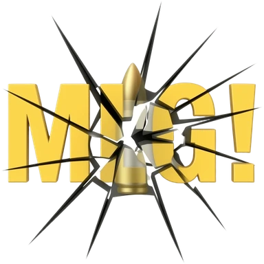 Надпись MLG! жёлтого цвета и сломалась от выстрела пули emoji
