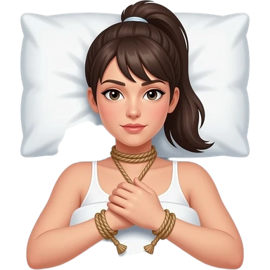 woman with ponytail on bed knot tied rope shibari emoji