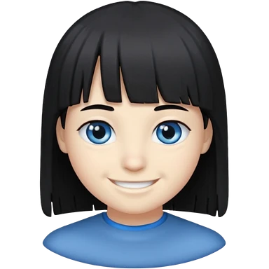 Grey anthropomorphic furry fox with a black coat, blue eyes, and a small fringe of black hair, smiling emoji