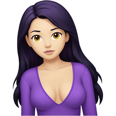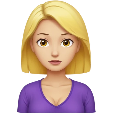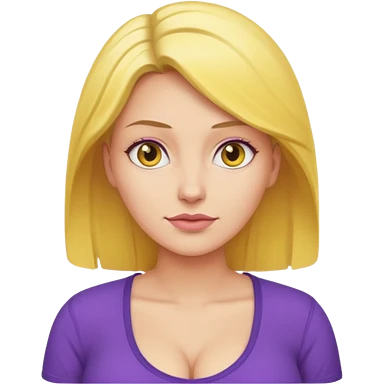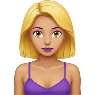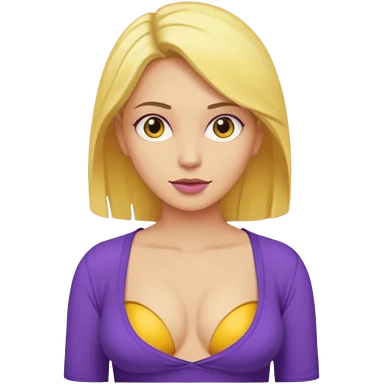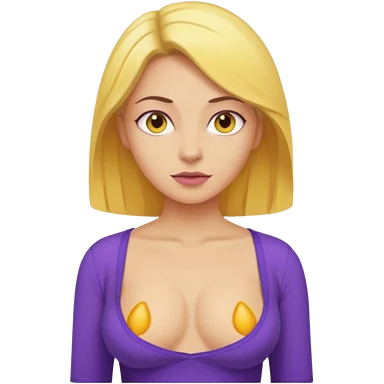 Make a yellow woman with a purple shirt with exposed boobs nude emoji