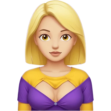 Make a yellow woman with a purple shirt with exposed boobs emoji