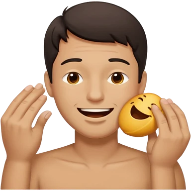 A male with closed relaxed eyes but the mouth it looks like it trying to hold in laughter emoji