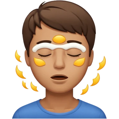 A male squinting his eyes hard but the mouth is blowing out emoji