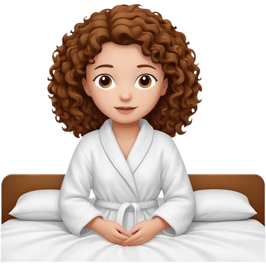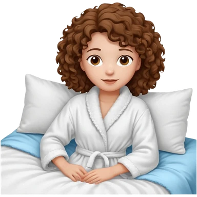 девушка в халате с кудрявыми волосами на кровати emoji