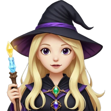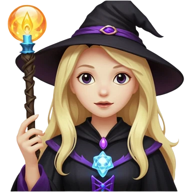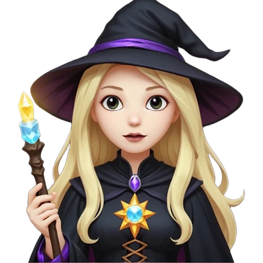 dark witch girl with long blonde hair and magic light stick emoji