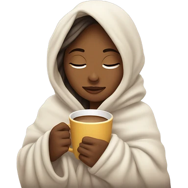 girl inside a blanket sipping coffee eyes closed emoji