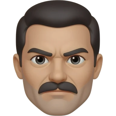 Create a simple emoji-style face with a small rectangular moustache, parted dark hair, and a stern expression, drawn in Apple-style emoji design with flat colors, rounded shapes, and clean vector lines. emoji