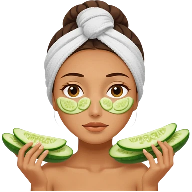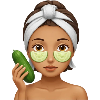 woman at the spa with cucumbers on her eyes (no eyeballs showing) and tan skin tone with towel covering hair emoji
