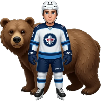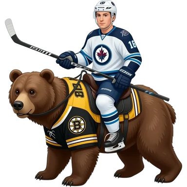 Winnipeg jets player riding on a bear wearing a Boston bruins jersey emoji