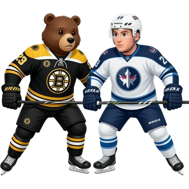 Bear in Boston bruin jersey fighting Winnipeg jets player emoji