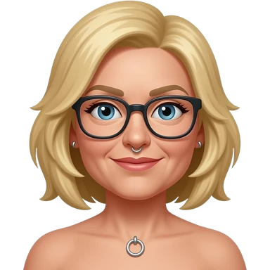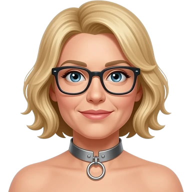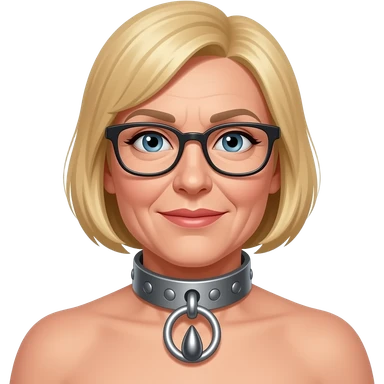 Frau 40, Brille, blond, metal collar mit O-Ring, nackt emoji