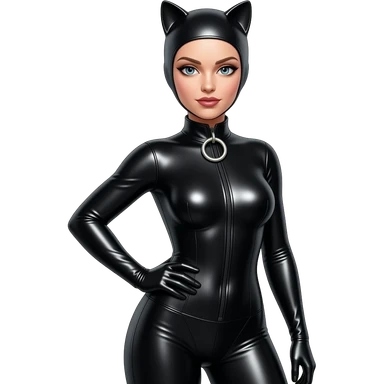 Girl wearing Latex catsuit from top to feet. Metal neck collar with big O-Ring emoji