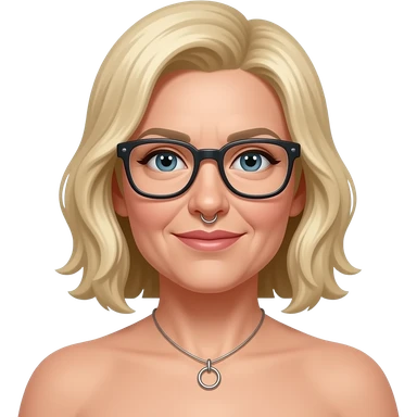 Frau 55, blond, brille , nackt, Brustwarzen und Bauchnabel piercing mit O-Ring emoji