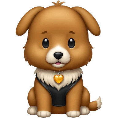 Um cachorro caramelo vestindo um terno emoji
