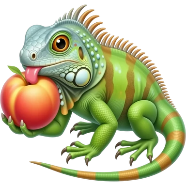 Una iguana lamiendo un durazno por la mitad de la línea del durazno emoji