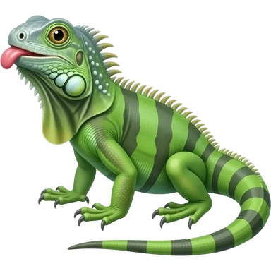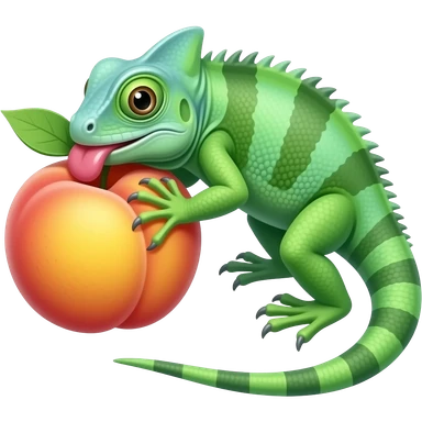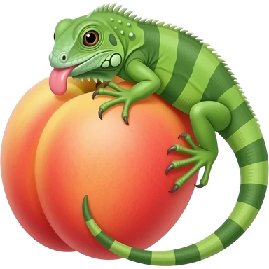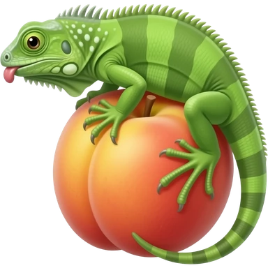 Una iguana lamiendo en la línea de la hendidura de un durazno emoji