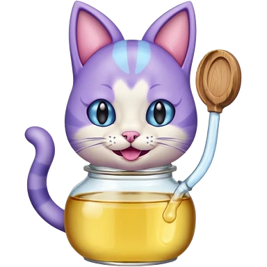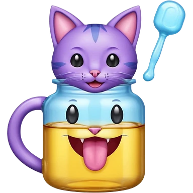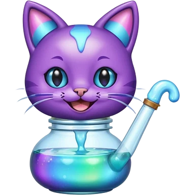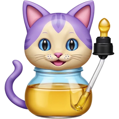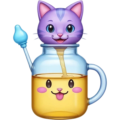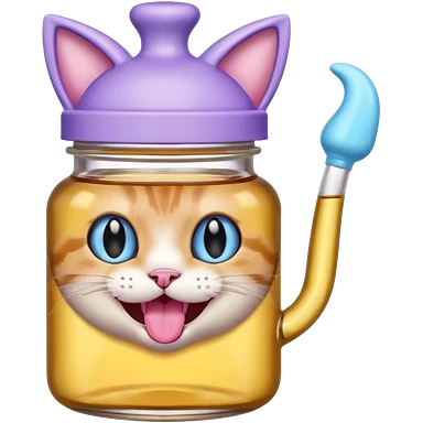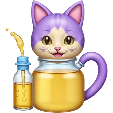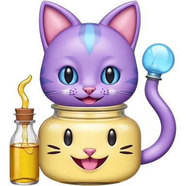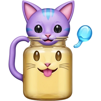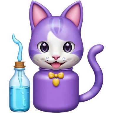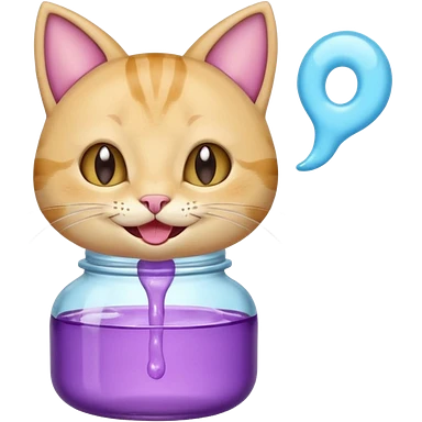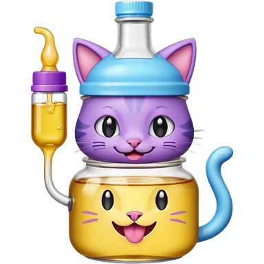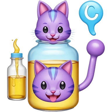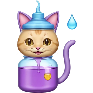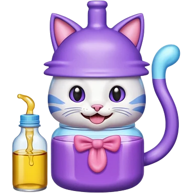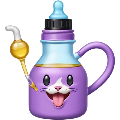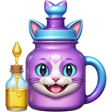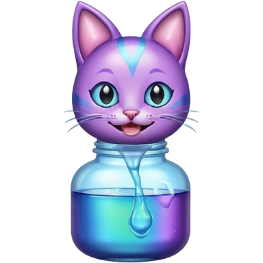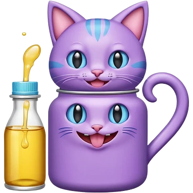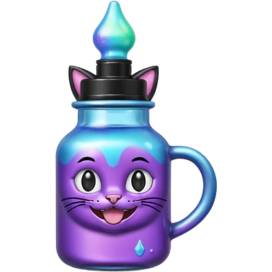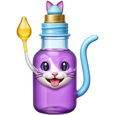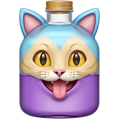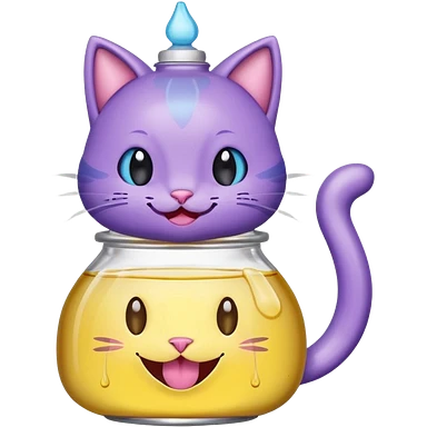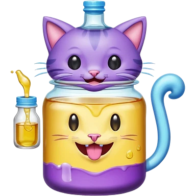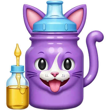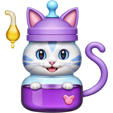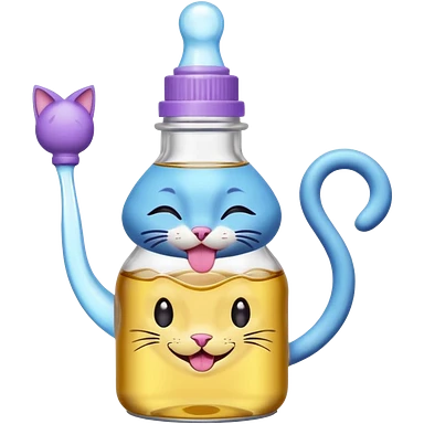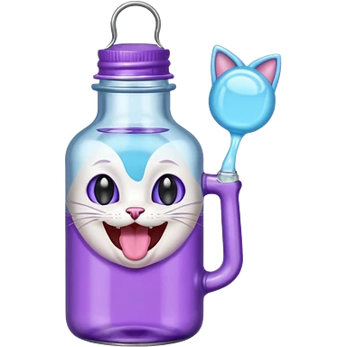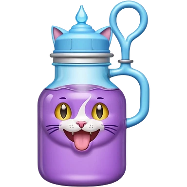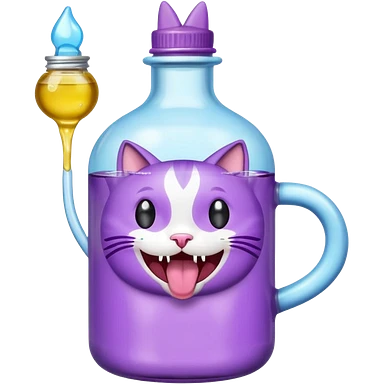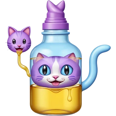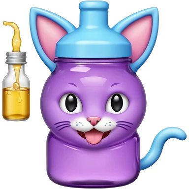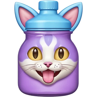 Smiling bottle of oil light purple top and light blue sticking tongue out and with cat ears emoji
