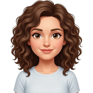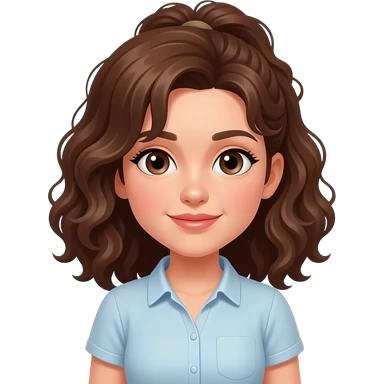 Female brown curly should length hair pulled halfway back with bangs swooped to one side emoji