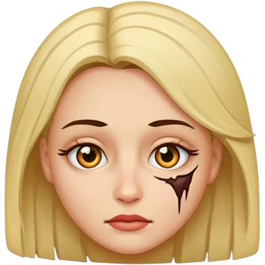 Short, center part, Dirty blond hair, fair skin with freckles, holding pretzels and closing one eye emoji