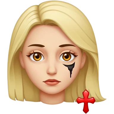 Short, center part, Dirty blond hair, fair skin with freckles, holding pretzels and winking her eye emoji