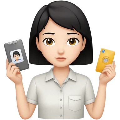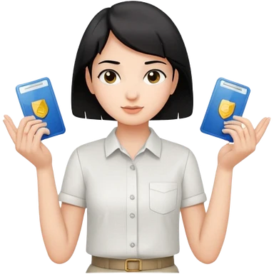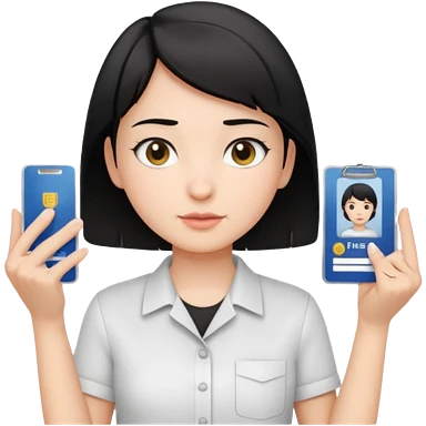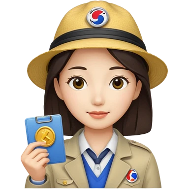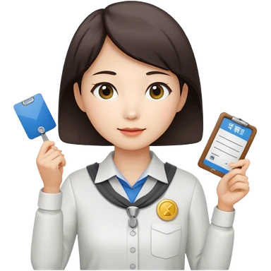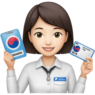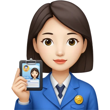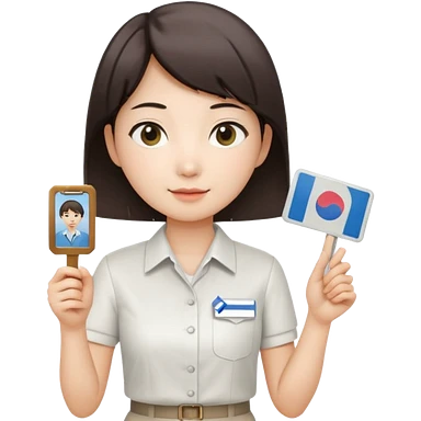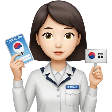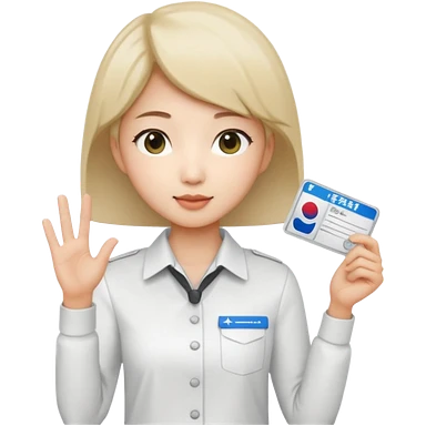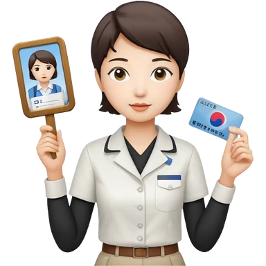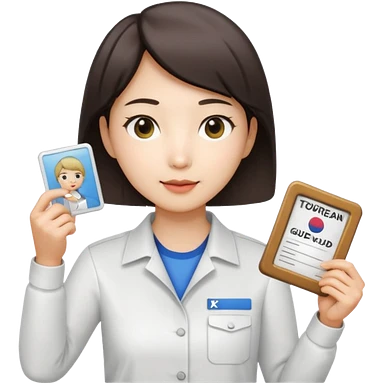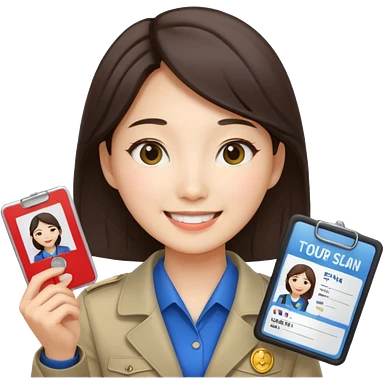 A Korean female tour guide holds her license. emoji