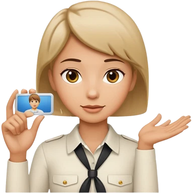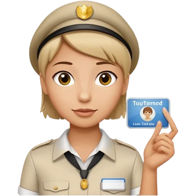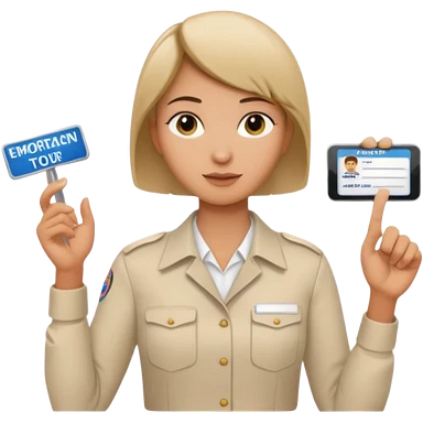 A young short-haired female tour guide wore a white shirt and showed everyone her license, which was horizontal. emoji