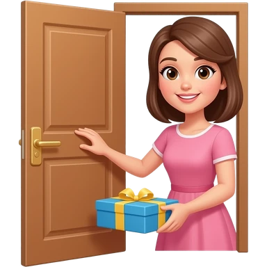 pretty woman with pink dress opening a door to pick up her package emoji
