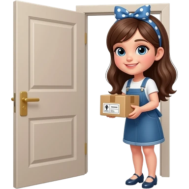 pretty girl with dress picking up package at front door emoji