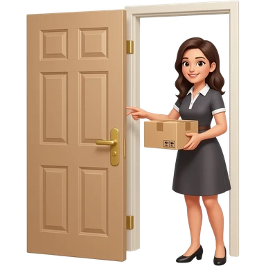 pretty girl with dress opening a door to pick up her package emoji
