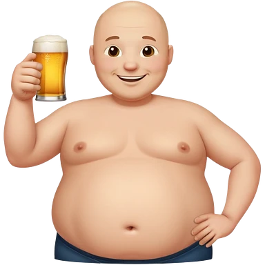 make an emoji of a fat bald man with a big belly, holding his belly with one hand, holding a glass of beer with the other hand, his t-shirt is bare in the belly area. emoji