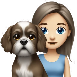 Brown hair girl with blue eyes holding grey shih ztu emoji