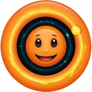 make a blackhole, accretion disk and all, with an orange smiley face, black head, orange ring, orange eyes, orange mouth, no other details emoji