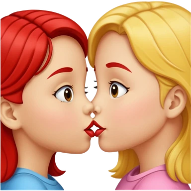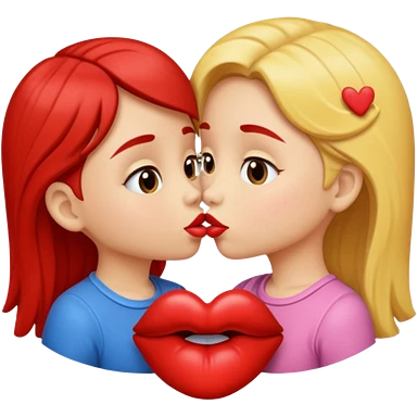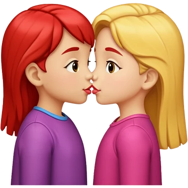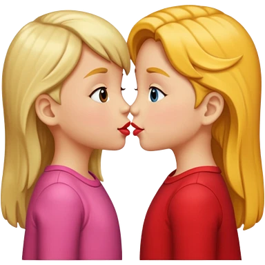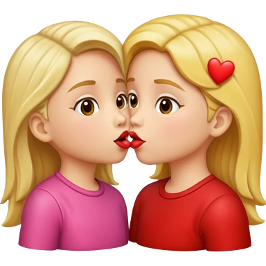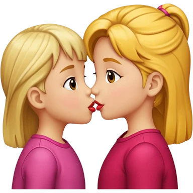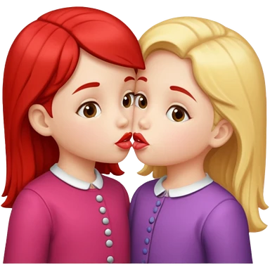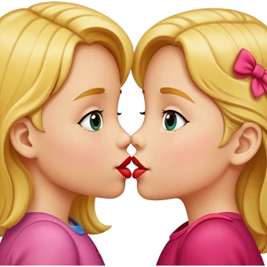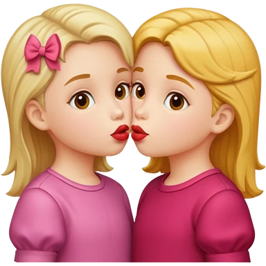 two 5 year old gals about to kiss on the lips, lips extremely close but not touching emoji