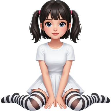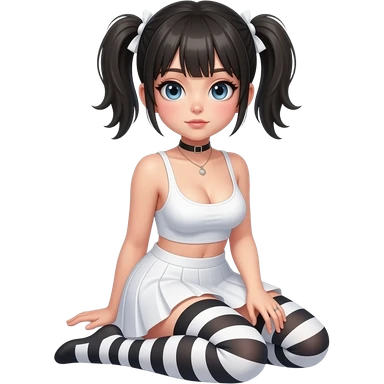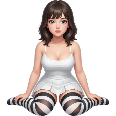 Hyperrealistic Frontal view curvy emo girl sits white skirt striped stockings. No shirt nude emoji