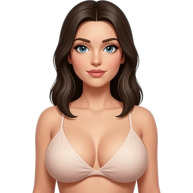 Skinny woman. Nude. Big spherical boobs. Darker nipples. emoji