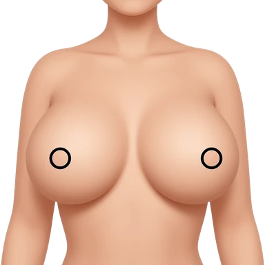 Skinny woman. Nude. Huge spherical boobs. Pink nipples outlined in black. emoji