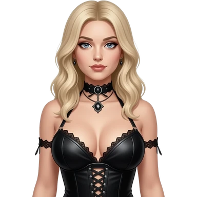 Blonde. Big boobs. Full body. Darker goth hair. Nude. Realistic nipples. Rounder boobs. emoji