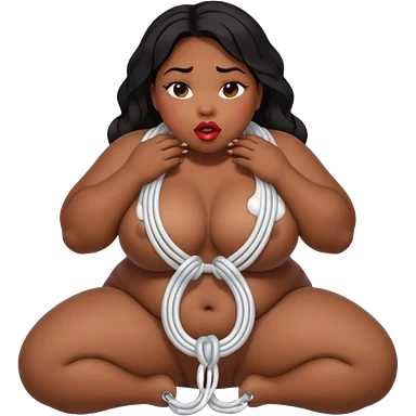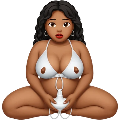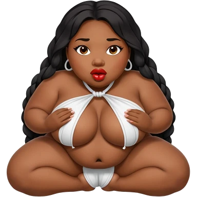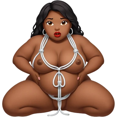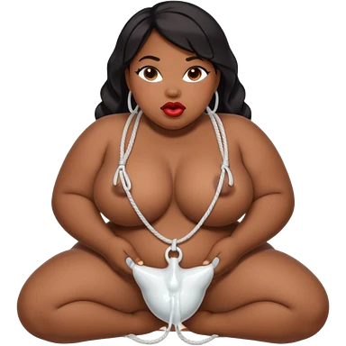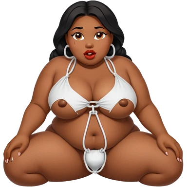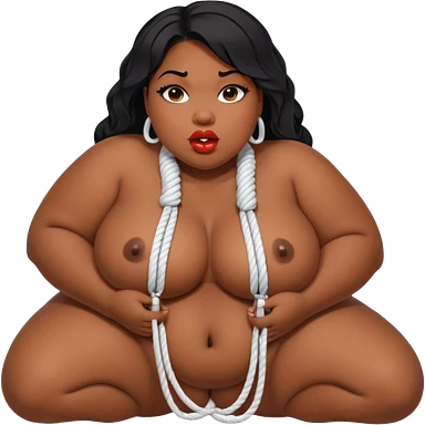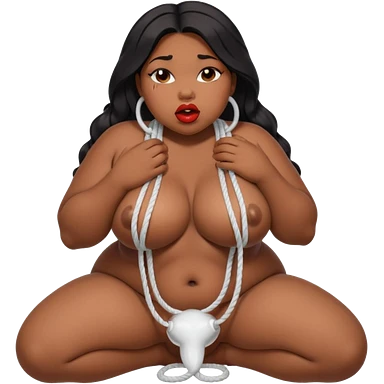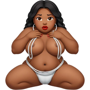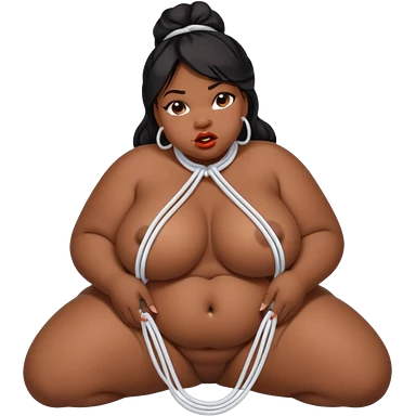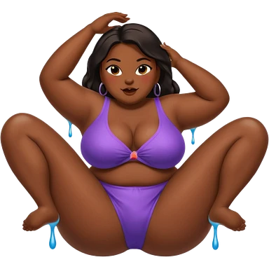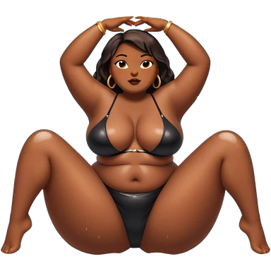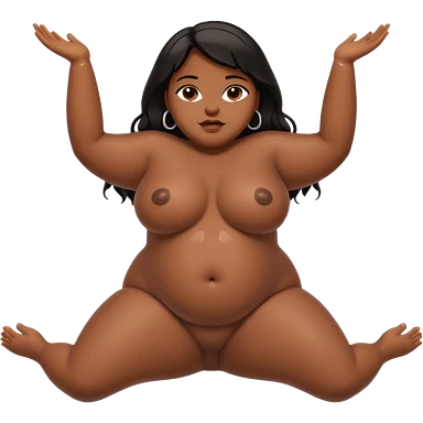 A naked sexy black bbw holding her legs up with her hands and her pussy exposed and it’s wet and dripping emoji