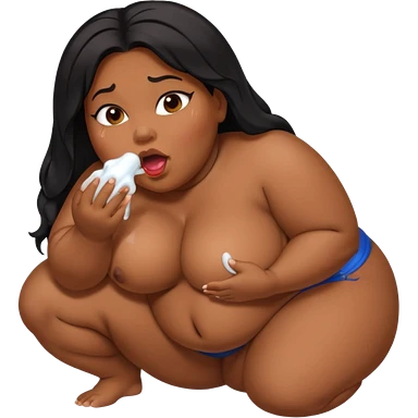 a sexy black BBW’s plump lips wide. She’s on her knees, cheeks hollow, drooling as she deepthroats. He explodes—hot cum floods her mouth, spilling in thick white ropes down her chin and dripping onto her , heaving tits and her vagina is open emoji