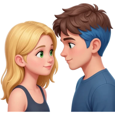 A girl with mediumblonde hair And green eyes in love with a boy with brown hair and blue hair emoji