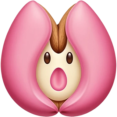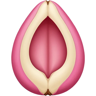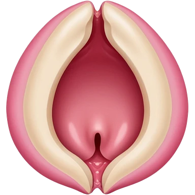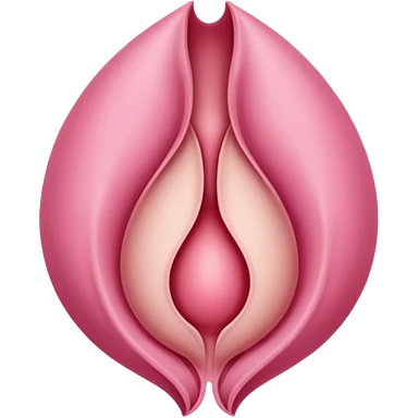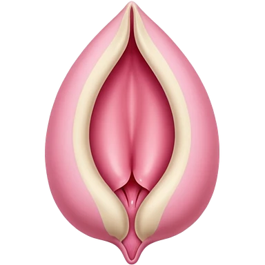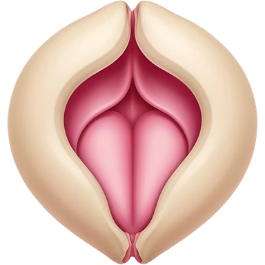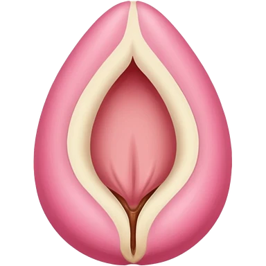 beige and pink vulva appearing moist, round pink clitoris at the top, no face, make it narrow and slim, beige on outside, pink on inside emoji