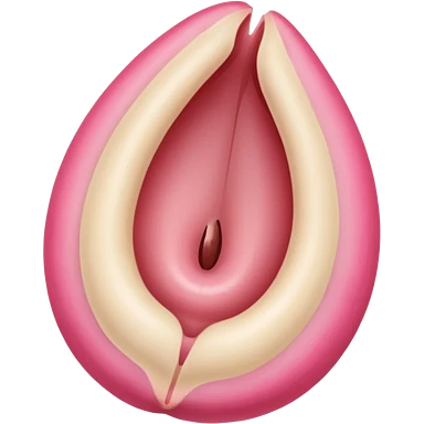 beige and pink vulva appearing moist, round pink clitoris at the top, no face, make it narrow and slim, beige on outer edges, pink on inner edges, slit and small hole in the middle emoji