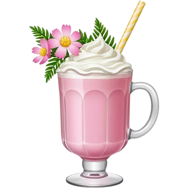 Pink Mimosa drink with flower and whipped cream emoji