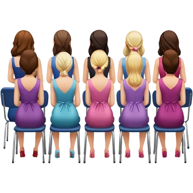 appreance from behind (back view) of 6 woman sitting each chair emoji