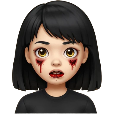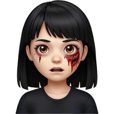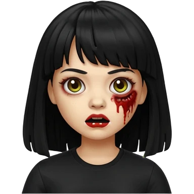 A zombie girl in Apple Memoji format with long, straight black hair with bangs, wearing a black shirt. emoji