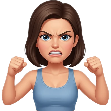 Woman very angry during exercise Hands clenched into fists wanting to hit emoji