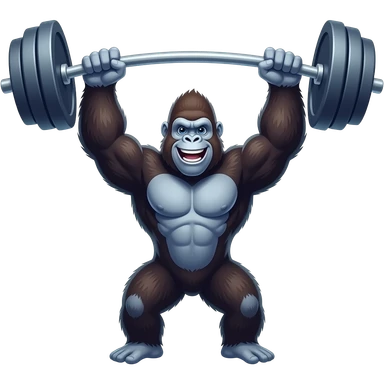 A cute 2D cartoon sticker of a muscular gorilla lifting a heavy barbell, smiling, vibrant colors, white border, flat design, high quality." emoji