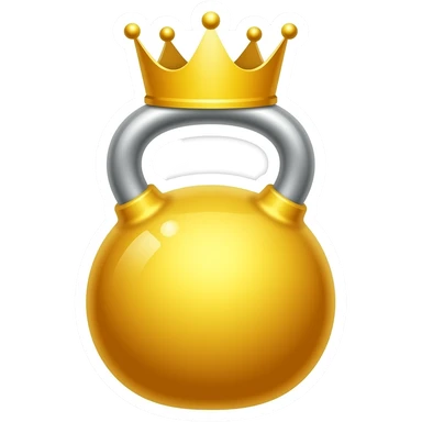 "A shiny golden kettlebell icon with a crown, game asset style, simple flat vector, bright colors, white border." emoji