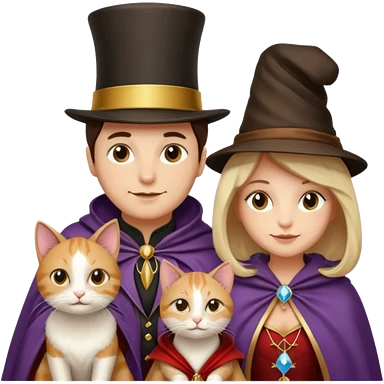 magician couple and their pet cat emoji