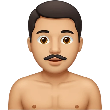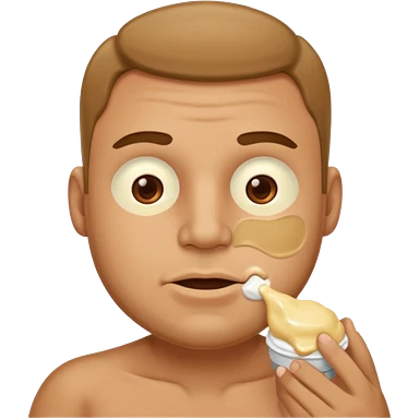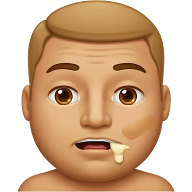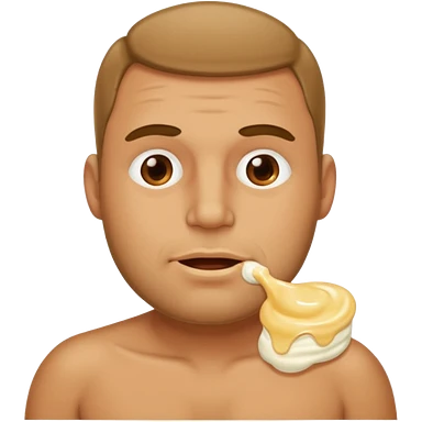 Stocky Tan man with cream on cheek mouth and chest emoji
